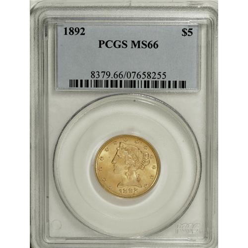 1892 $5 MS66 PCGS. The 1892 half eagle, with a mintage
