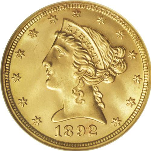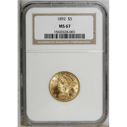 1892 $5 MS67 NGC. With a mintage of 753,480 pieces the