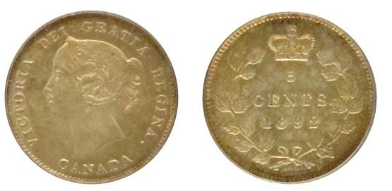 1892 5¢ PCGS MS66. Sparkling golden tones with full underlying lustre. Excellent strike with clean fields and lovely surfaces. The nicest example ever handled by TCNC.