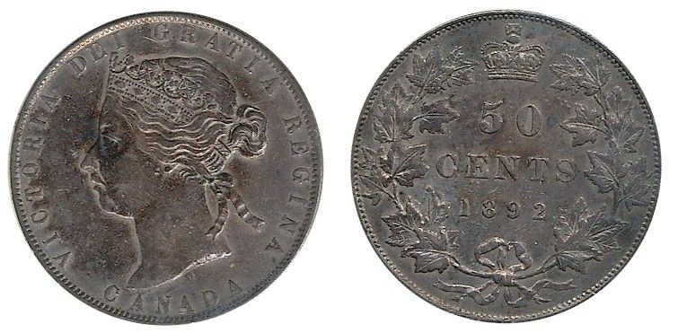 1892 50¢ Obv 4 ICCS EF40.