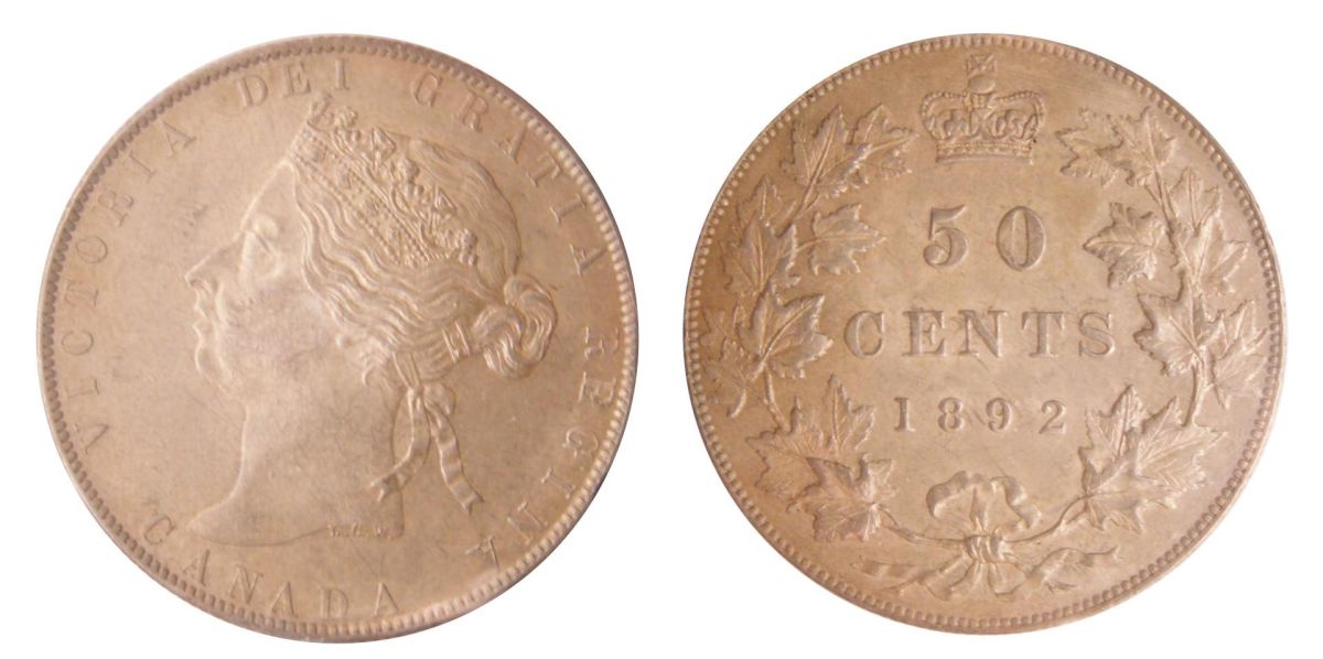 1892 50¢ Obv ICCS MS64. Superb example with shades of gold and yellow. Excessively scarce. Solo highest graded by ICCS.