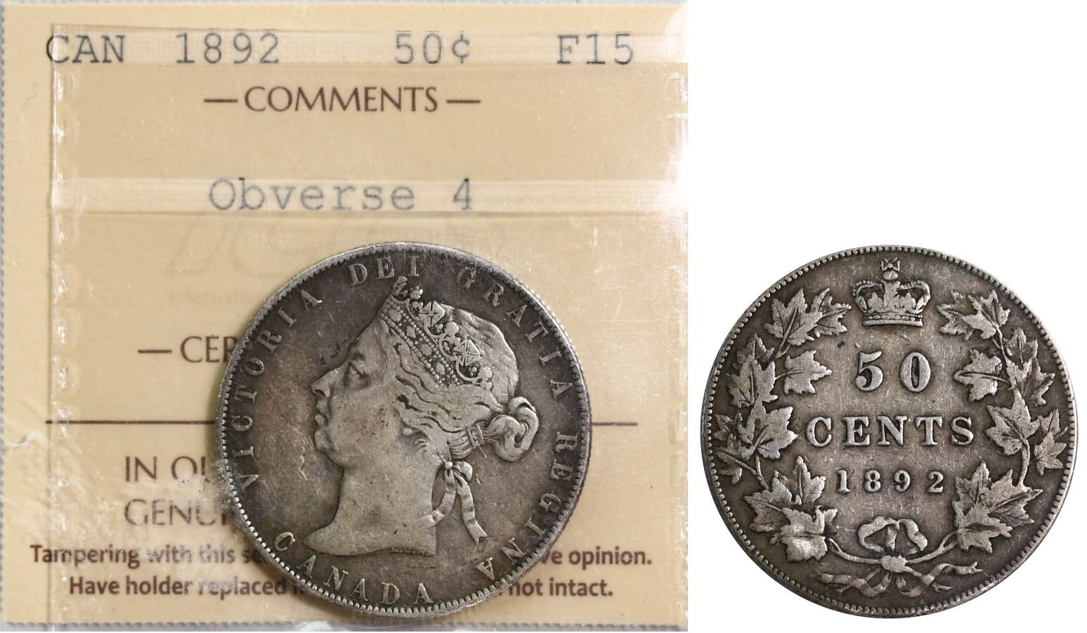 1892 50¢ Obverse 4 ICCS Choice Fine-15.