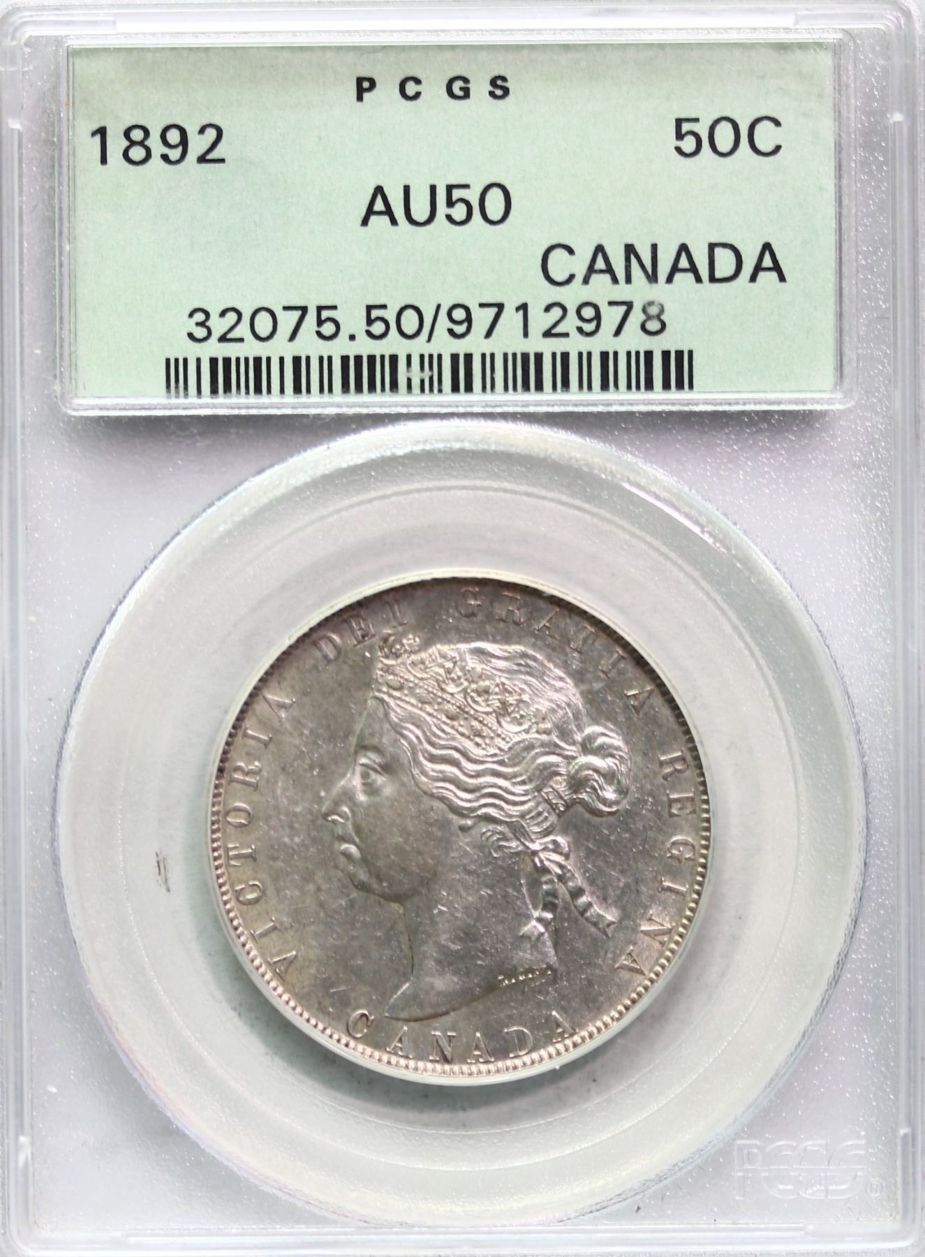 1892 50¢ PCGS About Uncirculated-50, Brilliant and lustrous. A very nice example.