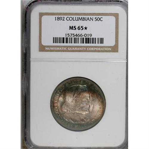 <B>1892 50C Columbian MS65<img border='0' src='http://www.heritagecoins.com/images/star.gif' width=10 height=10> NGC.</B></I> NGC Census: (830/246). PCGS Population (610/168). Mintage: 950,000. Numismedia Wsl. Price for NGC/PCGS coin in MS65: $600. (#9296)<BR><BR><b>Shipping:</b> Coins & Currency (<a target="_blank" href="http://www.heritageauctions.com/common/shipping.php">view shipping information</a>)