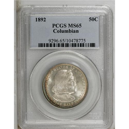 1892 50C Columbian MS65 PCGS. A highly lustrous Gem ex