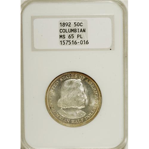 1892 50C Columbian MS65 Prooflike NGC. A moderately re