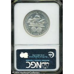 1892 50C Columbian MS65 Prooflike NGC. Brilliant a <B>1892 50C Columbian MS65 Prooflike NGC.</B></I> Brilliant aside from a pair of golden-brown freckles near the jaw, this suitably struck and flashy Gem has attractive preservation. Important as the first Commemorative issue. <BR><BR><B>Important notice:</B> Heritage usually auctions material at the rate of 200-250 lots per hour. On some occasions eBay Live bid software or the Internet may not be able to keep up with the pace of the auction. We recommend placing a realistic absentee bid now as insurance to avoid disappointment. Occasionally the auctioneer may eliminate or reject an eBay Live bid, and the auctioneer may also reopen a lot after the close of the eBay live bidding (usually because we missed an audience bid), and may reject your bid even if it shows you as the winning bidder. By bidding via eBay Live, you agree that Heritage may award the lot to another bidder at its sole discretion under the circumstances described above or any other reasonable circumstances. Since eBay bids are not shown to us until we open the lot on the floor, we treat those bids just like floor bids. In most cases the floor responds before the eBay bid is presented to us, due to Internet lag time, so for consistency we have made it a policy that floor bids are always considered first over tie eBay live bids. Also please note that all Heritage lots purchased through eBay Live carry a 20% Buyer's Premium. Please make sure you read the Terms and Conditions before you bid. This lot is being auctioned in conjunction with a live floor auction by Heritage Galleries & Auctioneers. All final auction and invoice information will be supplied by Heritage Galleries & Auctioneers, and all other information should be considered preliminary. Lot:7883