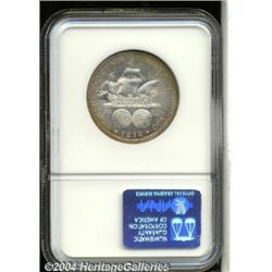 <B>1892<50C> Columbian MS66 NGC.</B></I> The obverse is deeply toned by dark-green and brown-gray patina, while the mostly brilliant reverse only shows pleasing golden rim toning. Well struck and very lightly abraded. <BR><BR><B>Important notice:</B> Heritage usually auctions material at the rate of 200-250 lots per hour. On some occasions eBay Live bid software or the Internet may not be able to keep up with the pace of the auction. We recommend placing a realistic absentee bid now as insurance to avoid disappointment. Occasionally the auctioneer may eliminate or reject an eBay Live bid, and the auctioneer may also reopen a lot after the close of the eBay live bidding (usually because we missed an audience bid), and may reject your bid even if it shows you as the winning bidder. By bidding via eBay Live, you agree that Heritage may award the lot to another bidder at its sole discretion under the circumstances described above or any other reasonable circumstances. Since eBay bids are not shown to us until we open the lot on the floor, we treat those bids just like floor bids. In most cases the floor responds before the eBay bid is presented to us, due to Internet lag time, so for consistency we have made it a policy that floor bids are always considered first over tie eBay live bids. Also please note that all Heritage lots purchased through eBay Live carry a 20% Buyer's Premium. Please make sure you read the Terms and Conditions before you bid. </span></font></tr></table></td></tr></table>