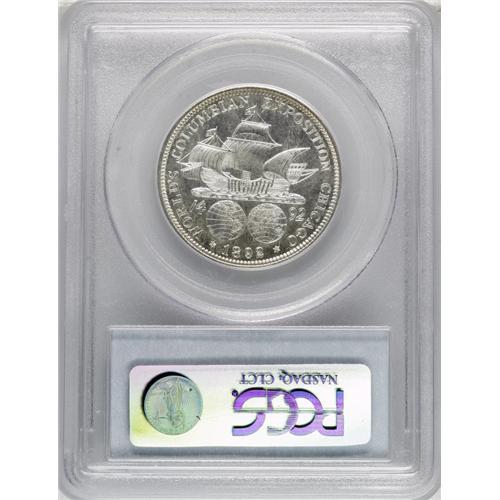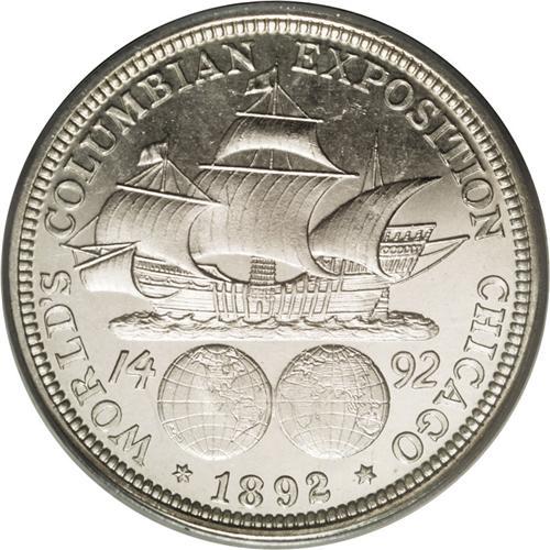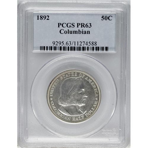 <B>1892 50C Columbian PR63 PCGS.</B></I> While many prooflike examples are known for the Columbian halves, true proofs number around 100 pieces for each issue, as in 103 specimens for 1892. If the moderate reflectivity does not convince the viewer, the exceptional detail on the portrait and the ship's rigging leave little doubt as to this piece's proof status. Gold-tinged haze appears on each side, and scattered hairlines and contact marks account for the grade. Still, the eye appeal of this example is strong. Population: 16 in 63, 20 finer (1/07).<BR><BR><b>Shipping:</b> Coins & Currency (<a target="_blank" href="http://www.heritageauctions.com/common/shipping.php">view shipping information</a>)