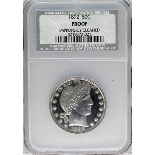 <B>1892 50C --Improperly Cleaned--NCS. Proof.</B></I> NGC Census: (0/0). PCGS Population (0/0). Mintage: 1,245. (#6539)<BR><BR><b>Shipping:</b> Coins & Currency (<a target="_blank" href="http://www.heritageauctions.com/common/shipping.php">view shipping information</a>)
