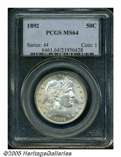 <B>1892<50C> MS64 PCGS.</B></I> Radiant luster enlivens each side, which portrays silvery surfaces with light flecks of gray in localized areas. The design features are sharply struck throughout. A couple of grade-limiting marks are located on Liberty's neck and cheek.