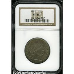 <B>1892 50C MS65 NGC.</B></I> This is an amazing Gem with deep steel and russet toning on both sides. The surfaces have underlying frosty luster. It is an exceptional example with amazing eye appeal. This is the first year of issue and is an important coin for type collectors.