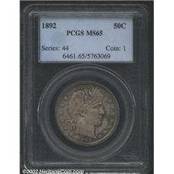 1892 50C MS65 PCGS. Tripled Die Reverse. No. 102. This variety was noted by Beistle in 1929, and it.