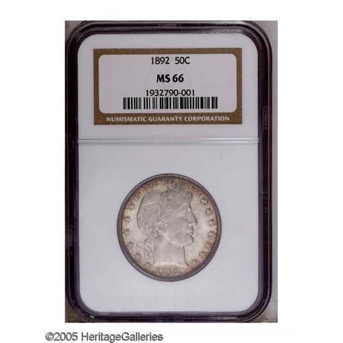 1892 50C MS66 NGC. Eye appeal, technical quality, and 1892[50C] MS66 NGC.
