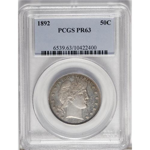 <B>1892 50C PR63 PCGS.</B></I> Medium golden-brown and cream-gray toning graces this meticulously struck and well preserved specimen. The reverse peripheral legend is die doubled, similar to FS-007.8, although that variety is a business strike.<BR><BR><b>Shipping:</b> Coin/Currency (<a target="_blank" href="http://www.heritageauctions.com/common/shipping.php">view shipping information</a>)