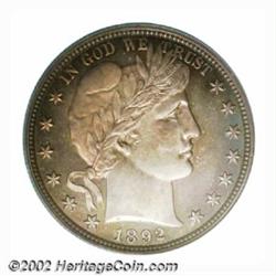 1892 50C PR65 Cameo PCGS. A glittering cameo proof that is spectacularly toned on each side. Rich golden-rose colors are in the centers with deep cobalt-blue peripheries. A spectacular proof type coin. Population: 4 in 65, 0 finer (10/02). Important notice: We expect to be auctioning lots at the rate of 200-250 per hour. Sometimes eBay Premier live bid software cannot keep up with that pace, so we strongly recommend that you place a realistic proxy bid now as insurance to avoid disappointment. Also please note that all Heritage/CAA lots purchased through eBay Premier carry a 20% Buyer's Premium. Please make sure you read the Terms and Conditions.