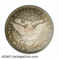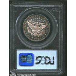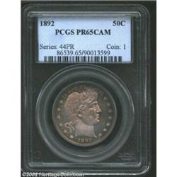 1892 50C PR65 Cameo PCGS. A glittering cameo proof that is spectacularly toned on each side. Rich go