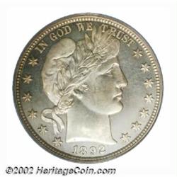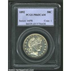 1892 50C PR65 Cameo PCGS. The fields are bright and sparkling with a light overlay of golden patina.