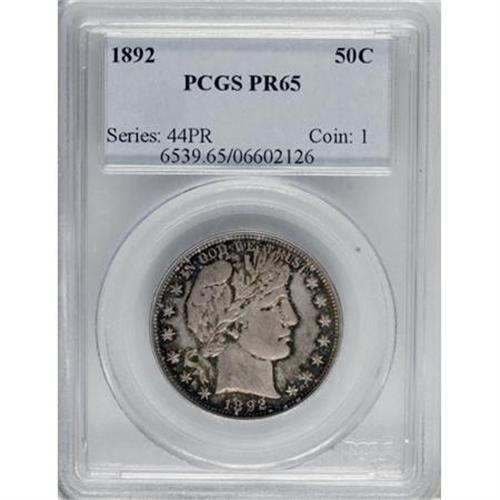 <B>1892 50C PR65 PCGS.</B></I> Walter Breen (1977), writing about the 1892 proof half dollars, says they were "Hoarded as first year of issue but not to such a large extent as the quarters." The Gem offered in this lot displays wisps of iridescent aqua-green, crimson, light blue, and golden-tan coloration resting in the fields and in the recesses of the design elements. An excellent strike, as befits a proof impression. A few wispy marks are visible under magnification in the fields. Population: 30 in 65, 39 finer (6/07).<BR><I>From The Arnold & Harriet Collection.</B></I><BR><BR><B>Coin Engraver:</B> Charles E. Barber<BR><BR><b>Shipping:</b> Coins & Currency (<a target="_blank" href="http://www.heritageauctions.com/common/shipping.php">view shipping information</a>\)