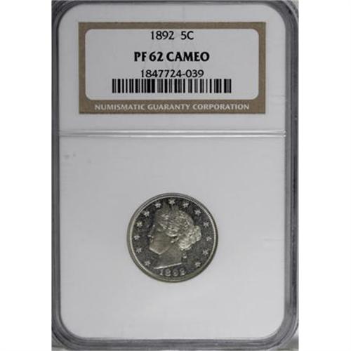 <B>1892 5C PR62 Cameo NGC.</B></I> NGC Census: (1/69). PCGS Population (0/55). (#83890)<BR><BR><b>Shipping:</b> Coins & Currency (<a target="_blank" href="http://www.heritageauctions.com/common/shipping.php">view shipping information</a>)