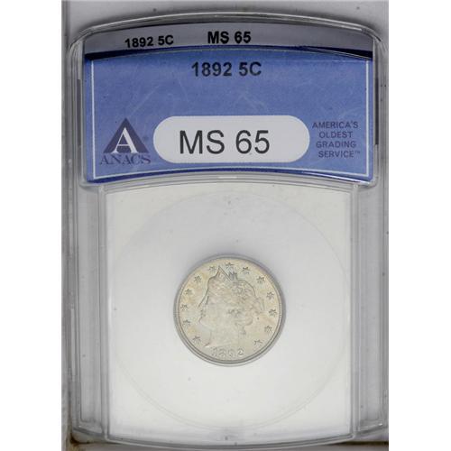1892 5C MS65 ANACS. A lovely Gem with brilliant light 1892[5C] MS65 ANACS.