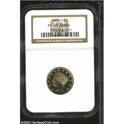 <TABLE cellSpacing=0 cellPadding=0 width="100%" bgColor=#000000 border=0><TBODY><TR><TD width="100%"><TABLE cellSpacing=1 cellPadding=3 width="100%" border=0><TBODY><TR><TD width="100%" bgColor=#79735c><FONT face=arial color=#ffffff size=3><B>Description</B> </FONT></TD></TR><TR><TD width="100%" bgColor=#ffffff><FONT face=arial size=2><B>1892 5C PR65 Cameo NGC.</B></I> The glassy proof surfaces are fully detailed and exhibit rich olive-gold color, which is partially overlaid on each side by vivid orange toning streaks. There are a handful of small contact marks on Liberty's face. The deeply reflective fields provide an ample backdrop, against which the lightly frosted devices are appealingly contrasted. Population: 10 in 65, 16 finer (7/03). </FONT></TD></TR></TBODY></TABLE></TD></TR></TBODY></TABLE><BR><A name=PricesRealized></A><TABLE cellSpacing=0 cellPadding=0 width="100%" bgColor=#000000 border=0><TBODY><TR><TD width="100%"><TABLE cellSpacing=1 cellPadding=3 width="100%" border=0><TBODY><TR><TD width="100%" bgColor=#79735c><A name=PR><FONT face=arial color=#ffffff size=3><B>Previous Prices from Heritage Auctions</B> </FONT></A></TD></TR><TR><TD bgColor=#f6f6ed><TABLE cellSpacing=0 cellPadding=0 width="100%" border=1><TBODY><TR><TD align=middle width="33%"><B>Date</B></TD><TD align=middle width="33%"><B>Service</B></TD><TD align=middle width="33%"><B>Price</B></TD></TR><TR bgColor=whitesmoke><TD width="33%"><B>11/15/2001</B></TD><TD width="33%">NGC</TD><TD width="33%">$517.50</TD></TR></TBODY></TABLE></TD></TR><TR><TD bgColor=#ffffff><FONT face=arial size=1 ?>PLEASE NOTE: All prices realized reflect the final hammer price PLUS the buyer's premium in auctions that charge a buyer's premium. Each item has a notation at the top of the listing indicating whether that lot included a buyer's premium. Example: A item that sells with a final hammer price of $100 and a 20% buyer's premium will display with a price realized of $120. All information listed is intended to be as accurate as possible, but errors are possible. Please use this guide carefully and inform us of any inaccuracies. </FONT></TD></TR></TBODY></TABLE></TD></TR></TBODY></TABLE><BR><TABLE cellSpacing=0 cellPadding=0 width="100%" bgColor=#000000 border=0><TBODY><TR><TD width="100%"><TABLE cellSpacing=1 cellPadding=3 width="100%" border=0><TBODY><TR><TD width="100%" bgColor=#79735c colSpan=6><FONT face=arial color=#ffffff size=3><B>Price Guide*</B> </FONT></TD></TR><TR bgColor=#f6f6ed><TD align=middle><B>Grade</B> </TD><TD align=middle><B>Coin World<BR>(Trends)</B> </TD><TD align=middle><B>Numismedia<BR>Retail</B> </TD><TD align=middle><B>Numismedia<BR>Wholesale</B> </TD><TD align=middle><B>Coin<BR>Universe</B> </TD><TD align=middle><B>Heritage<BR>Value Index</B> </TD></TR><TR bgColor=#ffffff><TD align=middle>64</TD><TD align=right>---</TD><TD align=right>---</TD><TD align=right>---</TD><TD align=right>---</TD><TD align=right>$225.50</TD></TR><TR style="FONT-WEIGHT: bold" bgColor=#cccfdd><TD align=middle>65</TD><TD align=right>---</TD><TD align=right>---</TD><TD align=right>---</TD><TD align=right>---</TD><TD align=right>$419.25</TD></TR><TR bgColor=#ffffff><TD align=middle>66</TD><TD align=right>---</TD><TD align=right>---</TD><TD align=right>---</TD><TD align=right>---</TD><TD align=right>---</TD></TR><TR bgColor=#ffffff><TD colSpan=6><FONT size=1>*All information listed is intended to be as accurate as possible, but errors are possible. No item may be returned or refused based on this information which is provided as a service to our customers. You should contact each pricing source directly to determine the accuracy of this information. </FONT></TD></TR></TBODY></TABLE></TD></TR></TBODY></TABLE><BR><TABLE cellSpacing=0 cellPadding=0 width="100%" bgColor=#000000 border=0><TBODY><TR><TD width="100%"><TABLE cellSpacing=1 cellPadding=3 width="100%" border=0><TBODY><TR><TD width="100%" bgColor=#79735c><FONT face=arial color=#ffffff size=3><B>Population Guide</B> </FONT></TD></TR><TR bgColor=#ffffff><TD align=middle><!-- Begin Output of Population Grid--><TABLE cellSpacing=0 cellPadding=0 width="100%" border=0><TBODY><TR><TD vAlign=center><TABLE cellSpacing=0 width="100%" border=1 cellsadding="3"><TBODY><TR><TD vAlign=center><TABLE cellSpacing=0 cellPadding=3 width="100%" border=1><TBODY><TR><TD vAlign=center align=middle bgColor=#f0f1e8 colSpan=2 <CENTER><FONT face=Arial size=2><B>PCGS Pop </B></FONT><CENTER></CENTER></TD><TD vAlign=center align=middle bgColor=#f0f1e8 colSpan=2><CENTER><FONT face=Arial size=2><B>NGC Pop</B></CENTER></FONT></TD></TR><TR><TD vAlign=center><FONT face=Arial size=2>(65)</FONT> </TD><TD vAlign=center align=right><FONT face=Arial size=2>3</FONT> </TD><TD vAlign=center><FONT face=Arial size=2>(65)</FONT> </TD><TD vAlign=center align=right><FONT face=Arial size=2>10</FONT> </TD></TR><TR><TD vAlign=center><FONT face=Arial size=2>(>65)</FONT> </TD><TD vAlign=center align=right><FONT face=Arial size=2>3</FONT> </TD><TD vAlign=center><FONT face=Arial size=2>(>65)</FONT> </TD><TD vAlign=center align=right><FONT face=Arial size=2>16</FONT> </TD></TR></TBODY></TABLE></TD></TR></TBODY></TABLE></TD></TR></TBODY></TABLE><!-- End Output of Population Grid--> Important notice: Heritage usually auctions material at the rate of 200-250 lots per hour. On some occasions eBay Live bid software or the Internet may not be able to keep up with the pace of the auction. We recommend placing a realistic absentee bid now as insurance to avoid disappointment. Occasionally the auctioneer may eliminate or reject an eBay Live bid, and the auctioneer may also reopen a lot after the close of the eBay live bidding (usually because we missed an audience bid), and may reject your bid even if it shows you as the winning bidder. By bidding via eBay Live, you agree that Heritage may award the lot to another bidder at its sole discretion under the circumstances described above or any other reasonable circumstances. Also please note that all 
