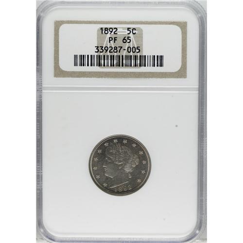 1892 5C PR65 NGC. This is a wonderful Gem proof with e