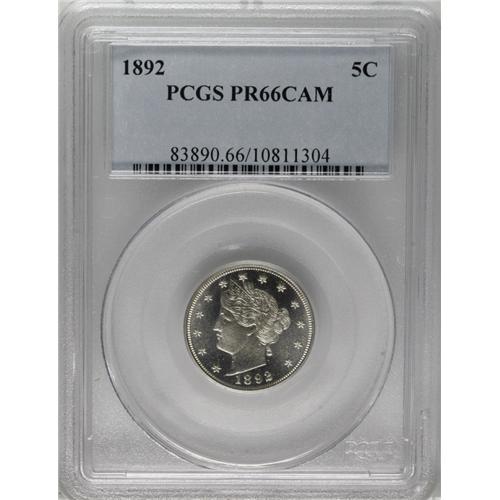 1892 5C PR66 Cameo PCGS. Boldly impressed and gleaming