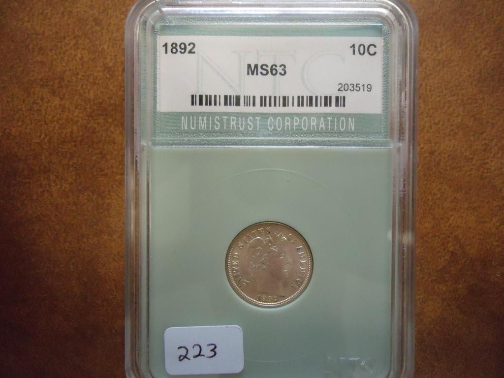1892 BARBER DIME NTC MS63