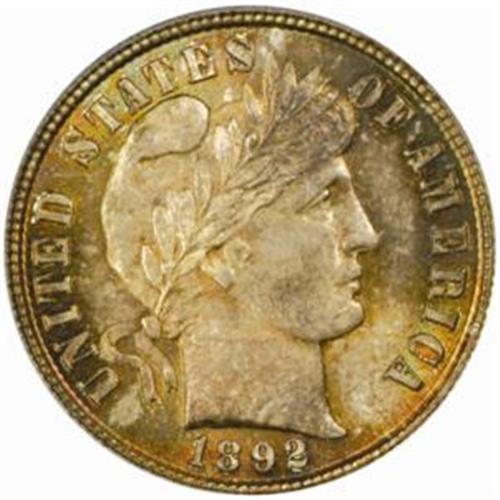 <style type="text/css"> body, td, th { font-family: Arial, Helvetica, sans-serif; font-size: 12px; color: #482424; margin: 0px; padding: 0px; } #header { background-image: url(http://www.bowersandmerena.com/ebay/images/template_v3_01.gif); clear: both; background-color: #590303; border-top-width: 2px; border-top-style: solid; border-top-color: #B38C4F;}#header #header_wrapper { height: 75px; clear: both; width: 800px; margin-right: auto; margin-left: auto; background-image: url(http://www.bowersandmerena.com/ebay/images/template_v3_03.gif); background-repeat: no-repeat; background-position: right; color: #F3EDCC;}#header #header_wrapper #header_logo { float: left; height: 75px; width: 444px; background-image: url(http://www.bowersandmerena.com/ebay/images/template_v3_02.gif); background-repeat: no-repeat; font-size: 10px; text-transform: capitalize; color: #B38C4F;}#header #header_wrapper #header_right { float: left; height: 75px; width: 356px; text-align: right;}#header #header_wrapper #header_right #headerLoginBtn { margin-bottom: 30px;}#header #header_wrapper #header_right input#txtSearch { color: #B49056; border: 1px solid #B49056; width: 175px; padding-top: 3px; padding-right: 3px; padding-bottom: 4px; padding-left: 3px;}#nav { height: 37px; background-image: url(http://www.bowersandmerena.com/ebay/images/template_v3_05.gif); clear: both;}#nav #nav_wrapper { height: 35px; width: 800px; margin-right: auto; margin-left: auto; border-left-width: 1px; border-left-style: solid; border-left-color: #B38C4F;}#nav #nav_wrapper a { padding-right: 15px; padding-left: 15px; border-right-width: 1px; border-right-style: solid; border-right-color: #B38C4F; height: 25px; padding-top: 10px; display: block; float: left; text-decoration: none; font-weight: bold; color: #5D0303;}#nav #nav_wrapper a:hover { color: #B38C4F;}#nav #nav_wrapper #search { float: right; padding-top: 7px;}#nav #nav_wrapper #search #txtSearch { font-family: Arial, Helvetica, sans-serif; font-size: 10px; text-transform: uppercase; color: #D2AE75; border: 1px solid #B38C4F; padding: 3px;}#content_bgd { background-image: url(http://www.bowersandmerena.com/ebay/images/template_v3_09.gif); background-repeat: repeat-y; background-position: center; padding-top: 15px; padding-bottom: 15px; background-color: #FBFBDB;}#content_wrapper { clear: both; height: auto; width: 800px; margin-right: auto; margin-left: auto;}.LotDetailWhite{ line-height:normal; font-size:13px; font-family: arial,helvetica,sans-serif; color: White; font-weight: bold;}.LotDetailInformation{ line-height:normal; font-size: 13px; font-family: arial,helvetica,sans-serif;}.LotDetailMessage{ line-height:normal; font-size: 13px; font-family: arial,helvetica,sans-serif; color: red;}}tr.HeaderAuctionTitle td { color: #000000; font-weight: bold; padding: 2px; background-image: url(http://www.bowersandmerena.com/ebay/images/template_v3_05.gif); background-repeat: repeat-x; border-bottom-width: 1px; border-bottom-style: solid; border-bottom-color: #B38C4F;}table.AuctionSummary a, table.AuctionSummary a:link, table.AuctionSummary a:visited { color: #0000FF; text-decoration: none;}}td.tableHeaderLeft { border-left-width: 1px; border-left-style: solid; border-left-color: #B38C4F;}td.tableHeaderRight { border-right-width: 1px; border-right-style: solid; border-right-color: #B38C4F;}td.tableCellMiddle { border-left-width: 1px; border-left-style: solid; border-left-color: #B38C4F; border-right-width: 1px; border-right-style: solid; border-right-color: #B38C4F; padding: 5px;}tr.footer td { border-top-width: 1px; border-top-style: solid; border-top-color: #B38C4F;}</style></head><body><div id="header"> <div id="header_wrapper"> <div id="header_logo"> </div> <div id="header_right"> </div> </div></div><div id="nav"> <div id="nav_wrapper"> <a href="http://www.bowersandmerena.com">Our eBayLive Auctions</a> <a href="#PaymentInfo">Payment Information</a> <a href="#ShippingInfo">Shipping Information</a> <a href="#About">About Bowers and Merena</a> </div></div><div id="content_bgd"> <div id="content_wrapper"> <table width="100%" border="0" cellpadding="5" cellspacing="0" class="AuctionSummary"> <tbody> <tr class="HeaderAuctionTitle" style="height: 25px;"> <td align="left" class="tableHeaderLeft" > </td> <td align="center" class="tableHeaderRight"> <span style="font-size: large;">Lot #462. 1892 Barber Dime. MS-66 (PCGS).</span> </td> </tr> <tr> <td colspan="3" class="tableCellMiddle"> A high-grade type candidate for the collector that appreciates originality, this first-year Barber Dime is layered in rich antique-copper patina with iridescent golden-orange highlights at the rims. Frosty mint luster is undiminished in vibrancy, and it is also free of distracting abrasions that could also have limited the grade.