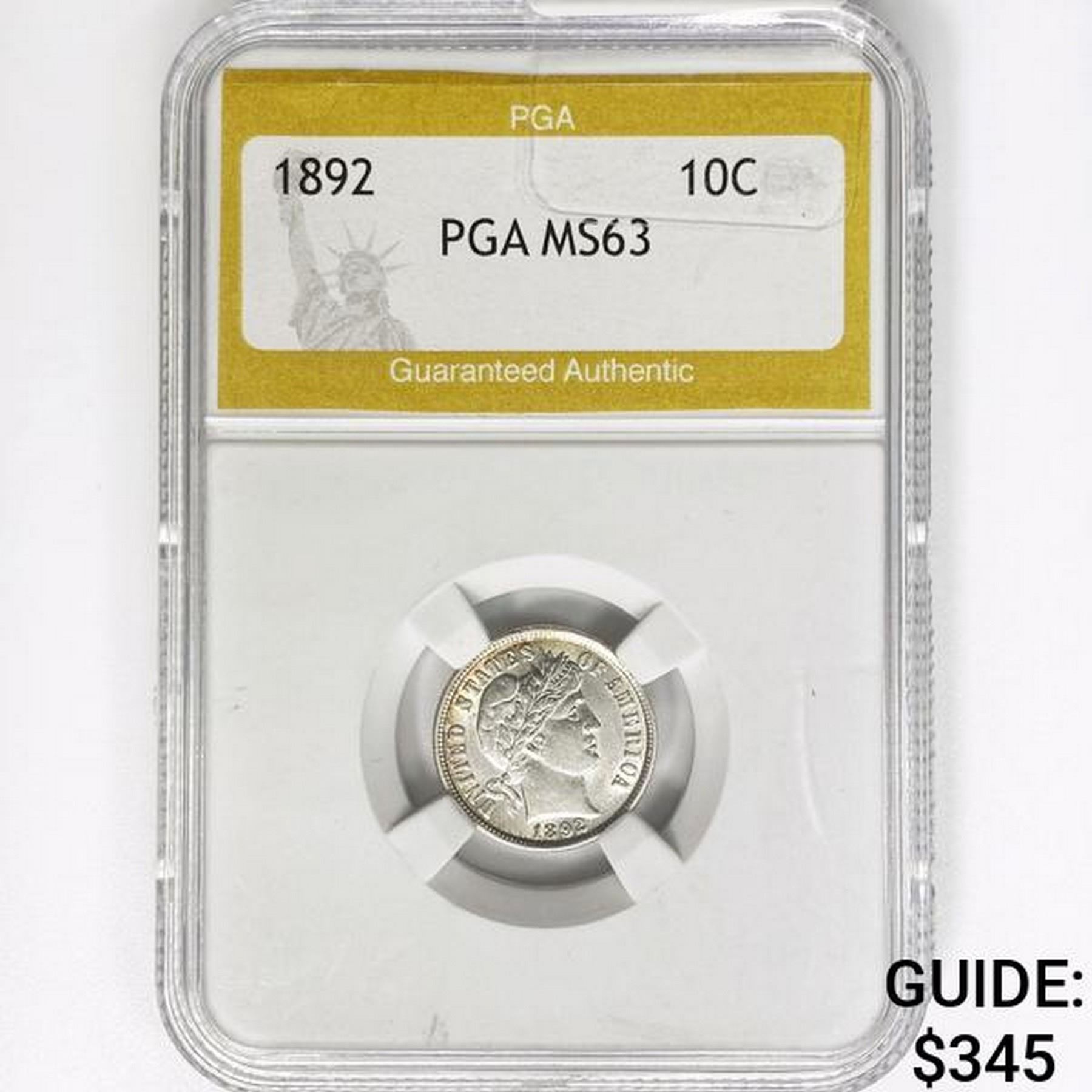 1892 Barber Dime PGA MS63