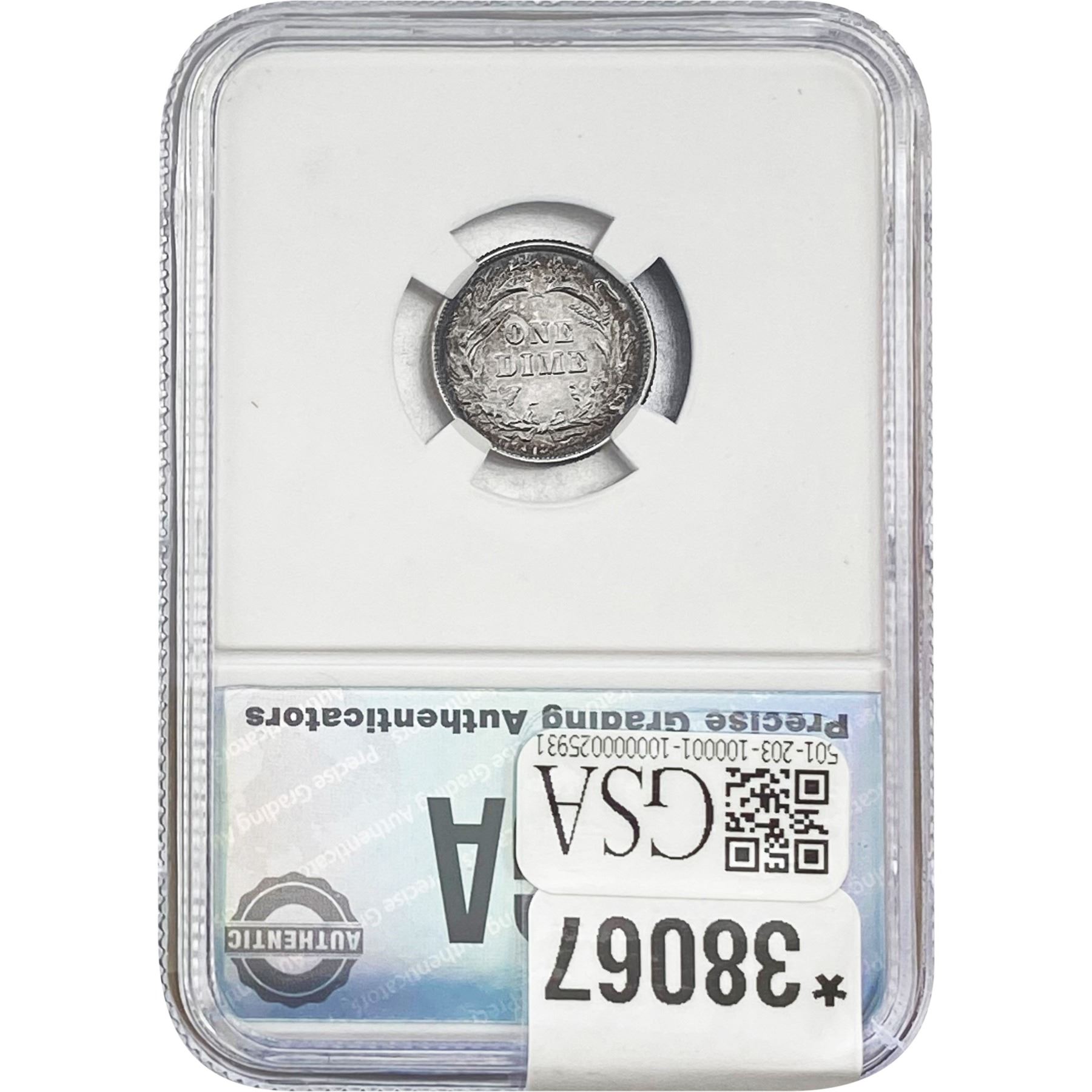 COINS AND CURRENCY LISTED IN GSA’S CATALOG AS GRADED AND ENCAPSULATED BY PCGS, NGC, ANACS, ICG, PCGS CURRENCY, PMG, PCGS BANKNOTE GRADING, CMC OR ANY OTHER THIRD-PARTY GRADING SERVICE ARE LIKEWISE SOLD “AS-IS” EXCEPT AS EXPRESSLY SET FORTH HEREIN. ALL THIRD-PARTY GRADING SERVICE GUARANTEES, INCLUDING AUTHENTICITY, ARE THE SOLE RESPONSIBILITY OF THE THIRD-PARTY GRADING SERVICE AND NOT WARRANTIES OR GUARANTEES OF GSA. BIDDERS SHOULD CONTACT THESE THIRD-PARTY GRADING SERVICES DIRECTLY WITH RESPECT TO ANY CLAIMS OR QUESTIONS THEY MAY HAVE CONCERNING THEIR GUARANTEES AND WARRANTIES. BIDDERS ACKNOWLEDGE AND AGREE THAT AUCTIONEER IS NOT BOUND BY OR LIABLE FOR ANY OPINION OR CERTIFICATION BY ANY THIRD-PARTY GRADING SERVICE. REMOVAL OF A PRODUCT FROM ITS PROTECTIVE CASING OR HOLDER OR ALTERATION OF ANY COIN HOLDER WAIVES ALL RIGHTS CONCERNING THE PRODUCT CONTAINED THEREIN.