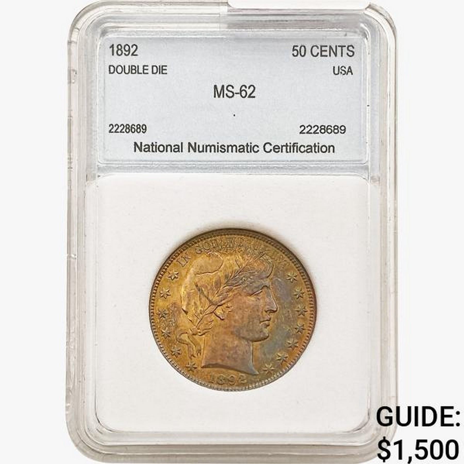 1892 Barber Half Dollar NNC MS62 DBL DIE