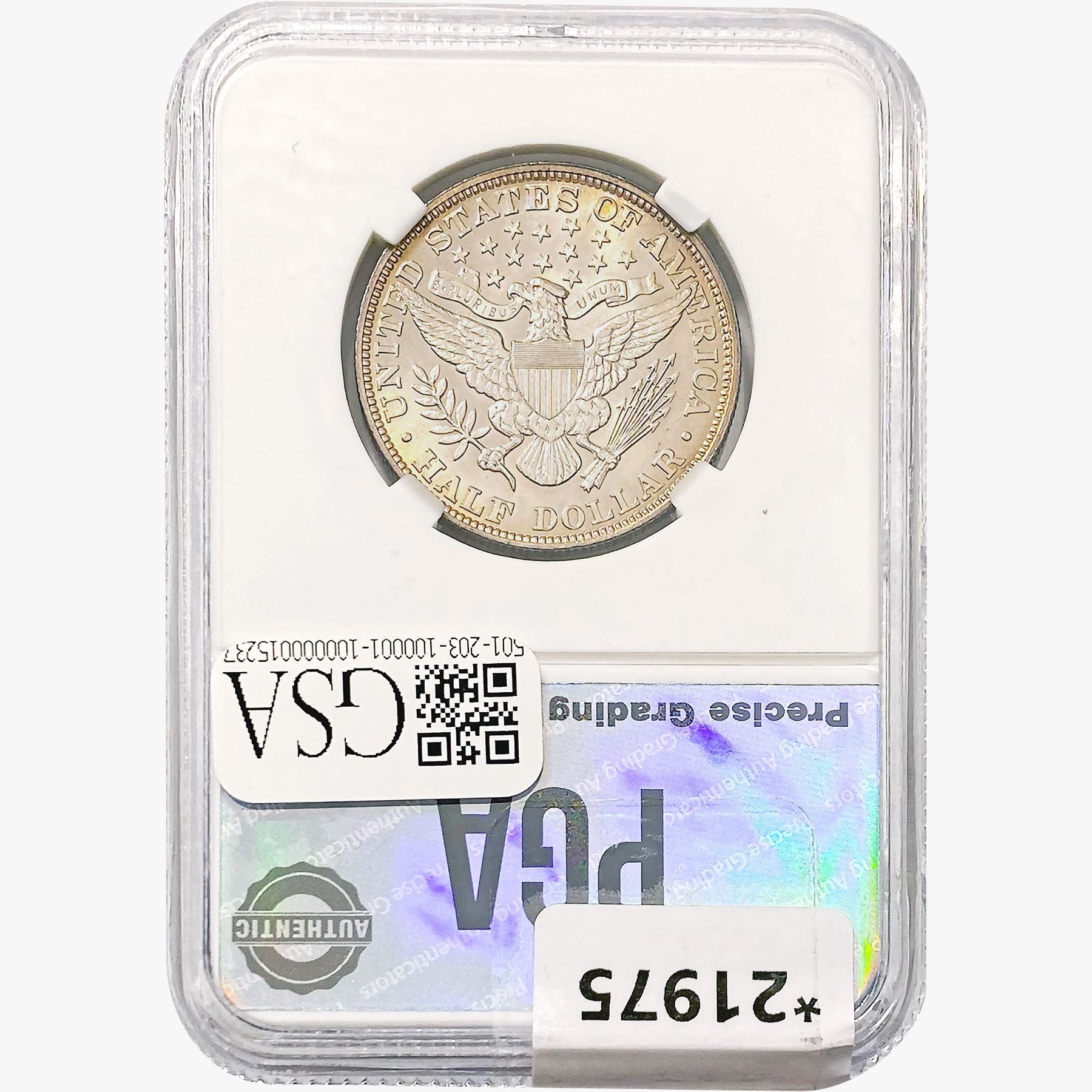 COINS AND CURRENCY LISTED IN GSA’S CATALOG AS GRADED AND ENCAPSULATED BY PCGS, NGC, ANACS, ICG, PCGS CURRENCY, PMG, PCGS BANKNOTE GRADING, CMC OR ANY OTHER THIRD-PARTY GRADING SERVICE ARE LIKEWISE SOLD “AS-IS” EXCEPT AS EXPRESSLY SET FORTH HEREIN. ALL THIRD-PARTY GRADING SERVICE GUARANTEES, INCLUDING AUTHENTICITY, ARE THE SOLE RESPONSIBILITY OF THE THIRD-PARTY GRADING SERVICE AND NOT WARRANTIES OR GUARANTEES OF GSA. BIDDERS SHOULD CONTACT THESE THIRD-PARTY GRADING SERVICES DIRECTLY WITH RESPECT TO ANY CLAIMS OR QUESTIONS THEY MAY HAVE CONCERNING THEIR GUARANTEES AND WARRANTIES. BIDDERS ACKNOWLEDGE AND AGREE THAT AUCTIONEER IS NOT BOUND BY OR LIABLE FOR ANY OPINION OR CERTIFICATION BY ANY THIRD-PARTY GRADING SERVICE. REMOVAL OF A PRODUCT FROM ITS PROTECTIVE CASING OR HOLDER OR ALTERATION OF ANY COIN HOLDER WAIVES ALL RIGHTS CONCERNING THE PRODUCT CONTAINED THEREIN.