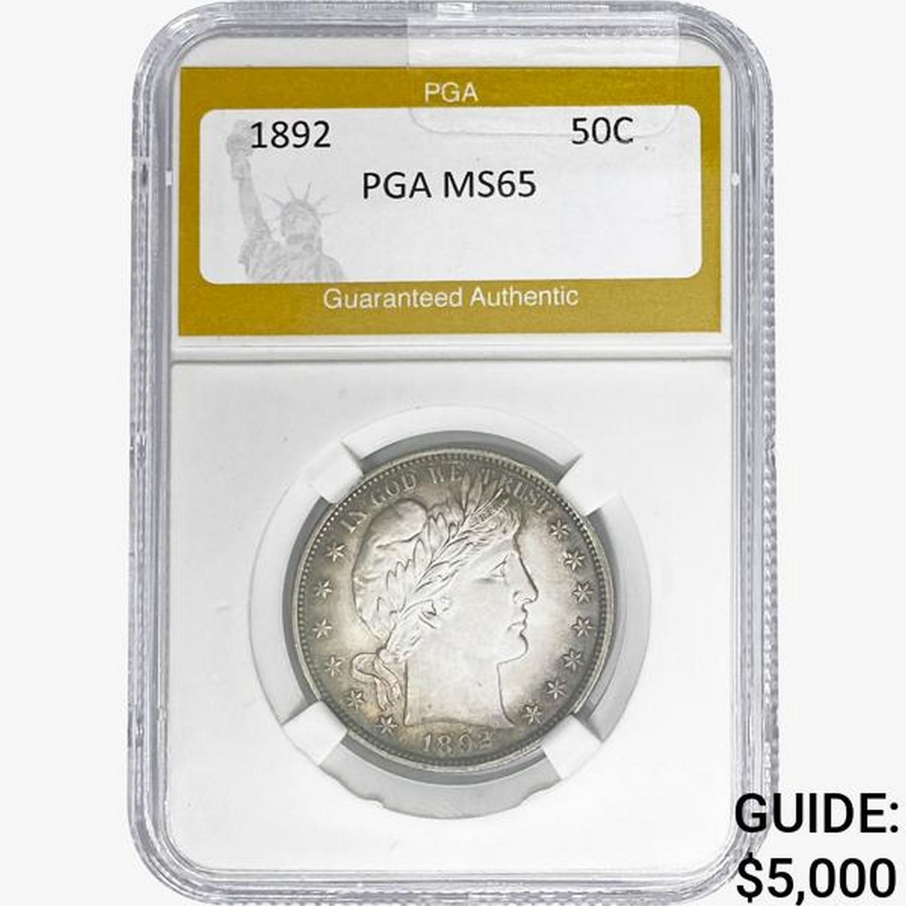 1892 Barber Half Dollar PGA MS65