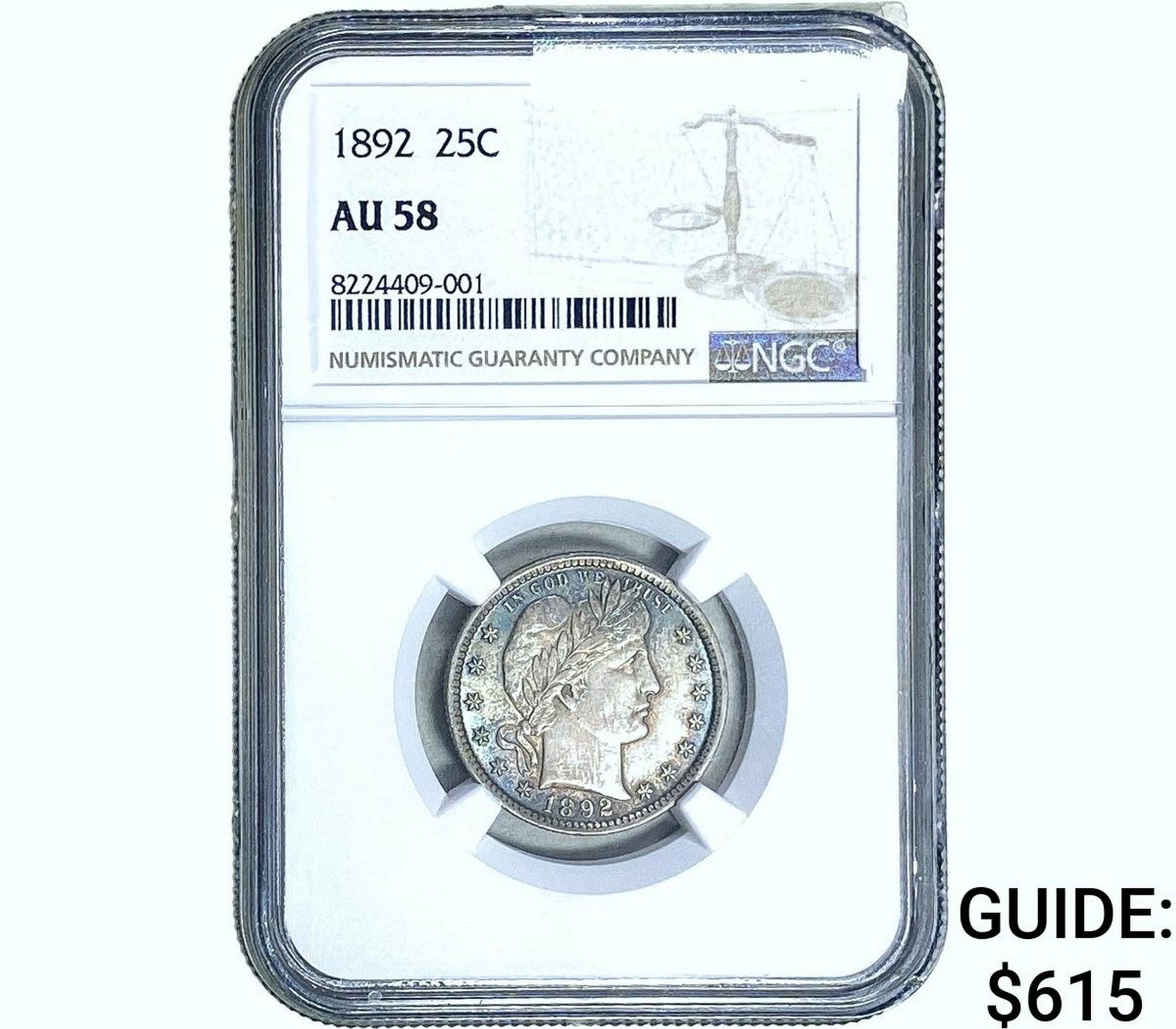 1892 Barber Quarter NGC AU58