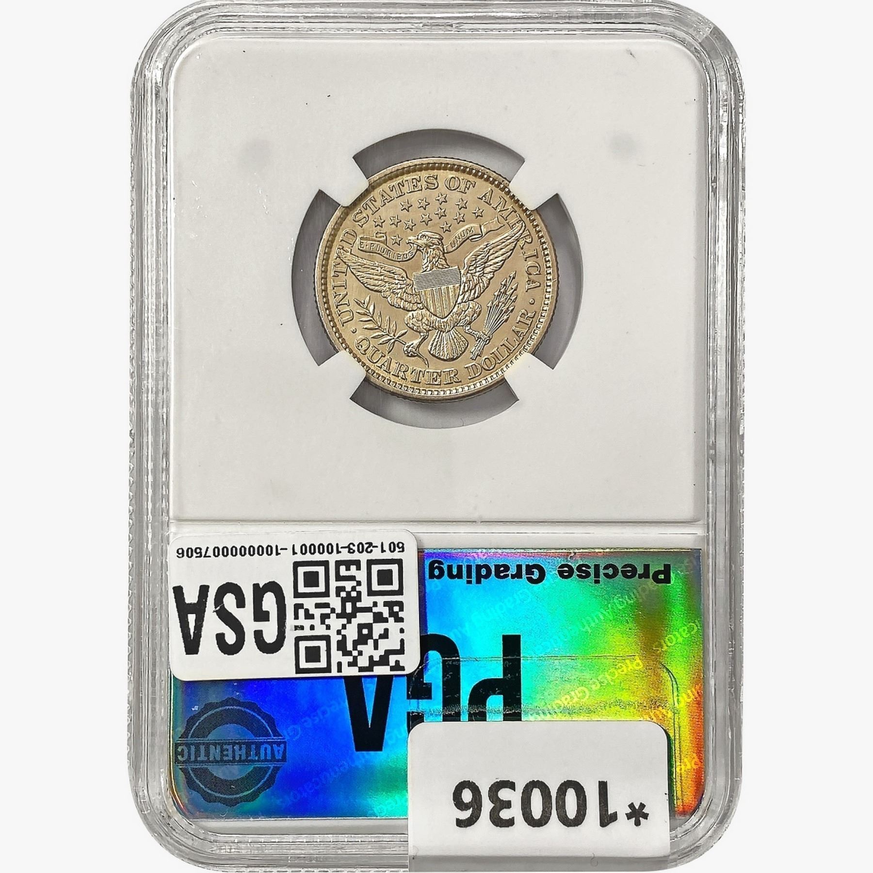 COINS AND CURRENCY LISTED IN GSA’S CATALOG AS GRADED AND ENCAPSULATED BY PCGS, NGC, ANACS, ICG, PCGS CURRENCY, PMG, PCGS BANKNOTE GRADING, CMC OR ANY OTHER THIRD-PARTY GRADING SERVICE ARE LIKEWISE SOLD “AS-IS” EXCEPT AS EXPRESSLY SET FORTH HEREIN. ALL THIRD-PARTY GRADING SERVICE GUARANTEES, INCLUDING AUTHENTICITY, ARE THE SOLE RESPONSIBILITY OF THE THIRD-PARTY GRADING SERVICE AND NOT WARRANTIES OR GUARANTEES OF GSA. BIDDERS SHOULD CONTACT THESE THIRD-PARTY GRADING SERVICES DIRECTLY WITH RESPECT TO ANY CLAIMS OR QUESTIONS THEY MAY HAVE CONCERNING THEIR GUARANTEES AND WARRANTIES. BIDDERS ACKNOWLEDGE AND AGREE THAT AUCTIONEER IS NOT BOUND BY OR LIABLE FOR ANY OPINION OR CERTIFICATION BY ANY THIRD-PARTY GRADING SERVICE. REMOVAL OF A PRODUCT FROM ITS PROTECTIVE CASING OR HOLDER OR ALTERATION OF ANY COIN HOLDER WAIVES ALL RIGHTS CONCERNING THE PRODUCT CONTAINED THEREIN.
