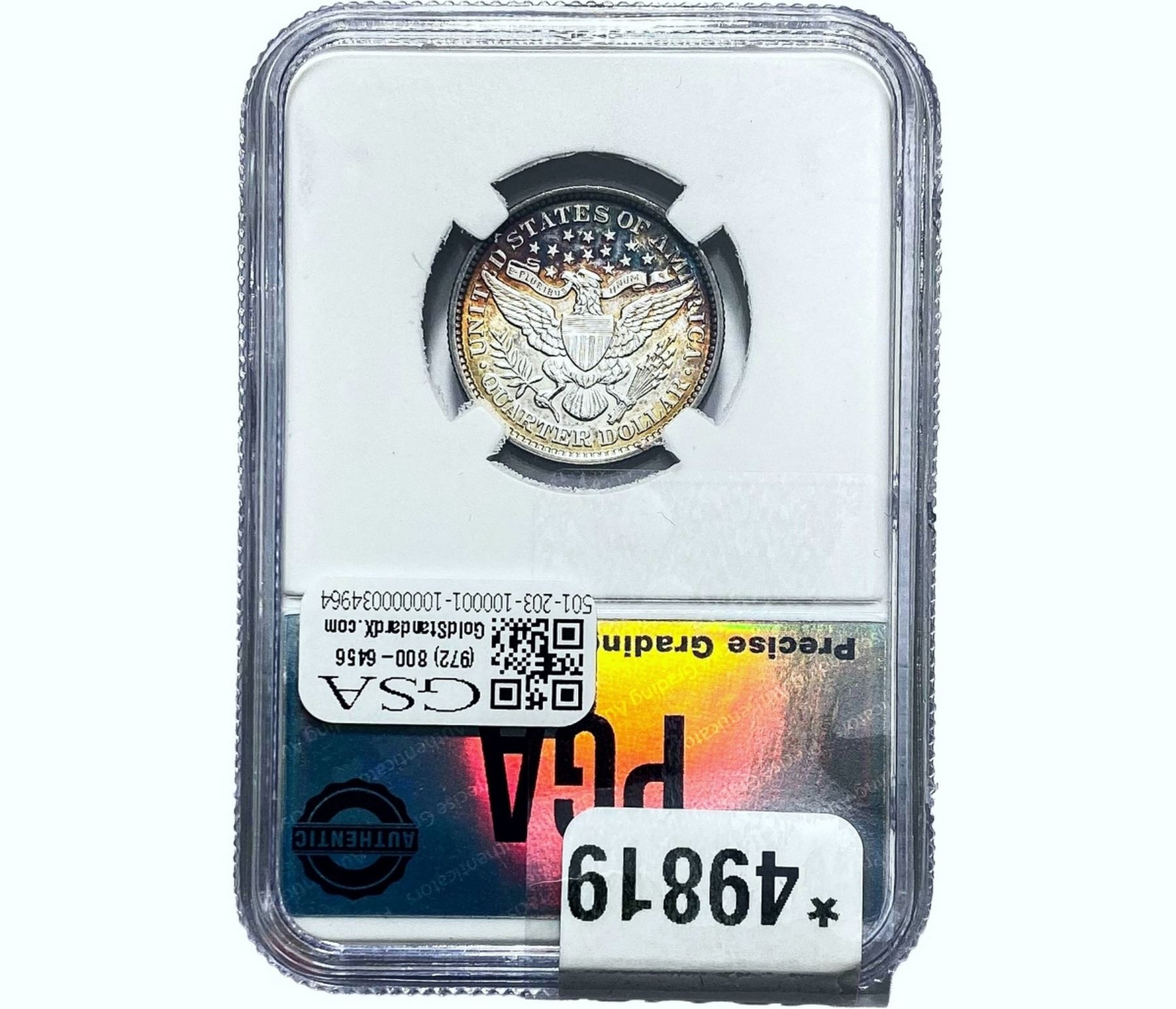 l. All non-certified coins and currency are guaranteed genuine, but are not guaranteed as to grade, since grading is a matter of opinion, an art and not a science, and therefore the description rendered by GSA or any third-party grading service may not agree with the opinion of others (including trained experts), and the same expert may not grade the same item with the same grade at two different times. GSA may, but is not obligated to, express an opinion as to non-certified numismatic items, in GSA’s opinion, or by its employees’ experience and the current interpretation of the American Numismatic Association’s standards as of the date the catalog was prepared. There is no guarantee or warranty expressed or implied that the grading opinions utilized by GSA, if any, will meet the standards of any grading service at any time in the future.