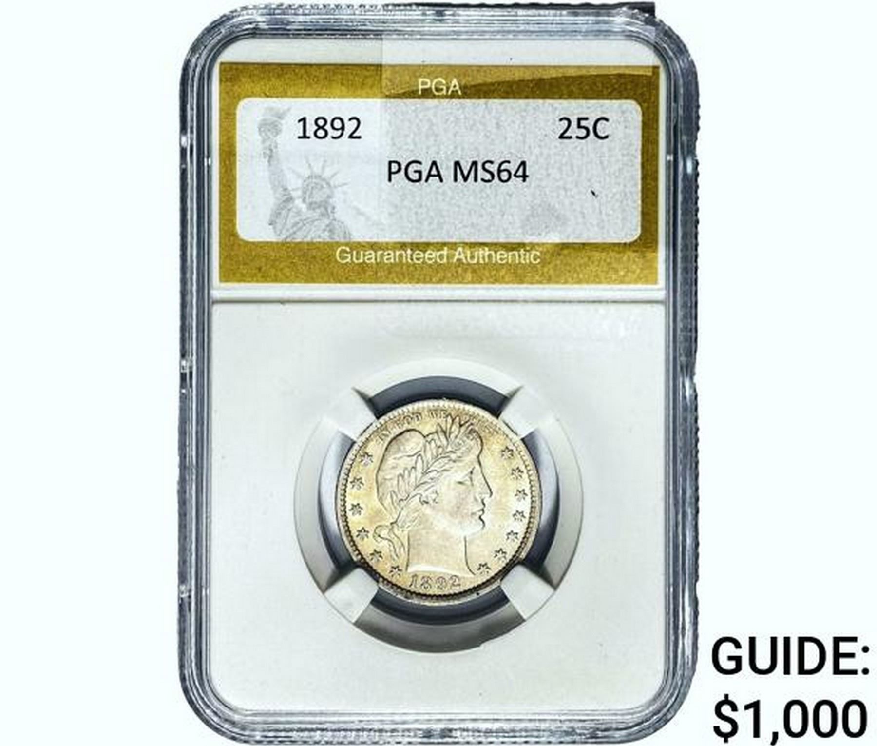 COINS AND CURRENCY LISTED IN GSA’S CATALOG AS GRADED AND ENCAPSULATED BY PCGS, NGC, ANACS, ICG, PCGS CURRENCY, PMG, PCGS BANKNOTE GRADING, CMC OR ANY OTHER THIRD-PARTY GRADING SERVICE ARE LIKEWISE SOLD “AS-IS” EXCEPT AS EXPRESSLY SET FORTH HEREIN. ALL THIRD-PARTY GRADING SERVICE GUARANTEES, INCLUDING AUTHENTICITY, ARE THE SOLE RESPONSIBILITY OF THE THIRD-PARTY GRADING SERVICE AND NOT WARRANTIES OR GUARANTEES OF GSA. BIDDERS SHOULD CONTACT THESE THIRD-PARTY GRADING SERVICES DIRECTLY WITH RESPECT TO ANY CLAIMS OR QUESTIONS THEY MAY HAVE CONCERNING THEIR GUARANTEES AND WARRANTIES. BIDDERS ACKNOWLEDGE AND AGREE THAT AUCTIONEER IS NOT BOUND BY OR LIABLE FOR ANY OPINION OR CERTIFICATION BY ANY THIRD-PARTY GRADING SERVICE. REMOVAL OF A PRODUCT FROM ITS PROTECTIVE CASING OR HOLDER OR ALTERATION OF ANY COIN HOLDER WAIVES ALL RIGHTS CONCERNING THE PRODUCT CONTAINED THEREIN.