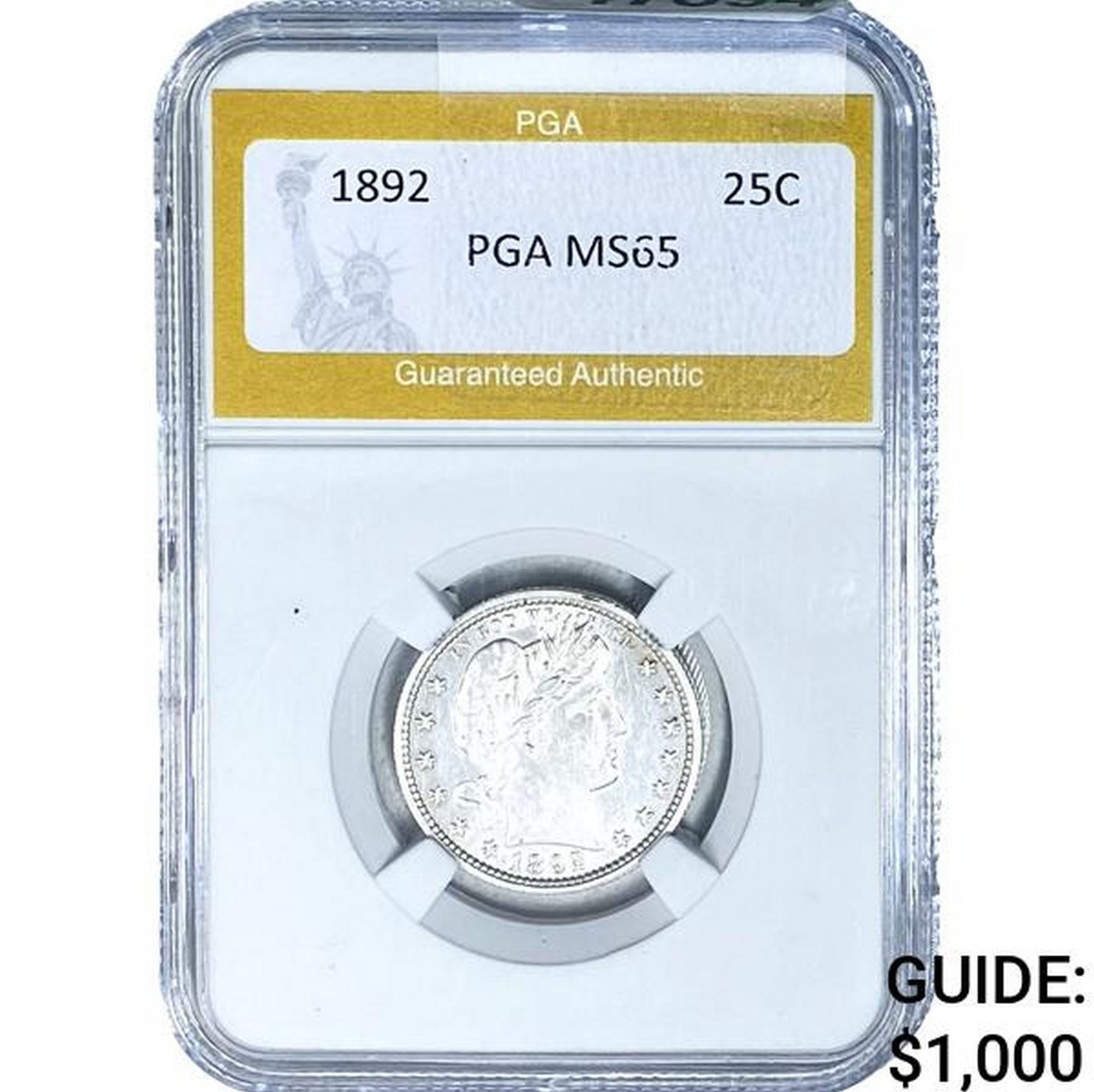 1892 Barber Quarter PGA MS65