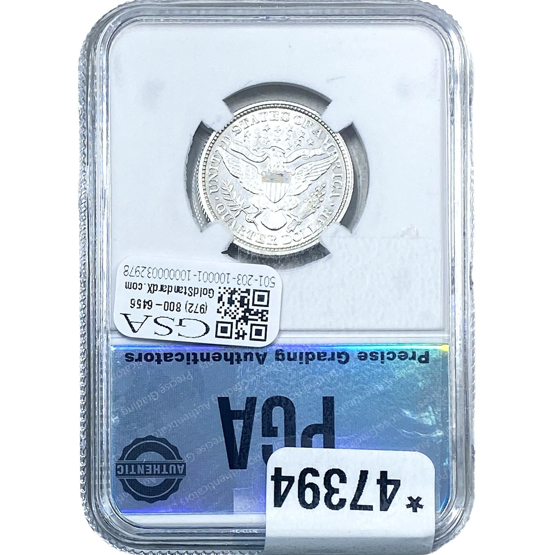 e. Coins sold referencing a third-party grading service are sold “AS IS” without any express or implied warranty, except for a guarantee by GSA that they are genuine. Removal or alteration of the holder, voids all of Bidder’s claims concerning that Product. Certain warranties may be available from the grading services and Bidders are referred to them for further details: Numismatic Guaranty Corporation (NGC), PO Box 4776, Sarasota, FL 34230, www.ngccoin.com/services/writtenguarantee.asp; Professional Coin Grading Services (PCGS), PO Box 9458, Newport Beach, CA 92658, www.pcgs.com/guarantee.html; ANACS, 6555 S. Kenton St., Ste. 303, Englewood, CO 80111; and Independent Coin Grading Co. (ICG), 7901 East Bellview, Ave., Suite 50, Englewood, CO 80111.