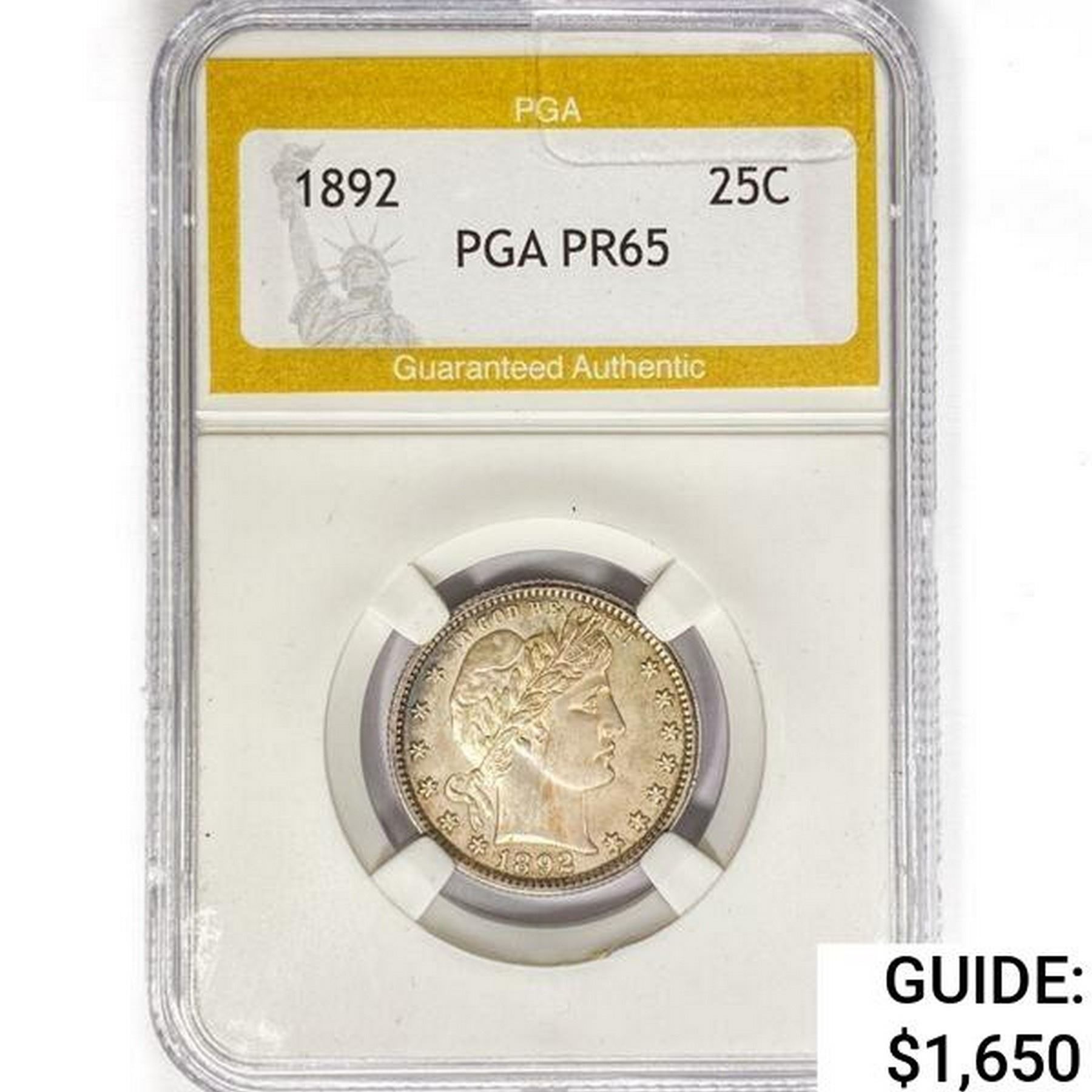 1892 Barber Quarter PGA PR65