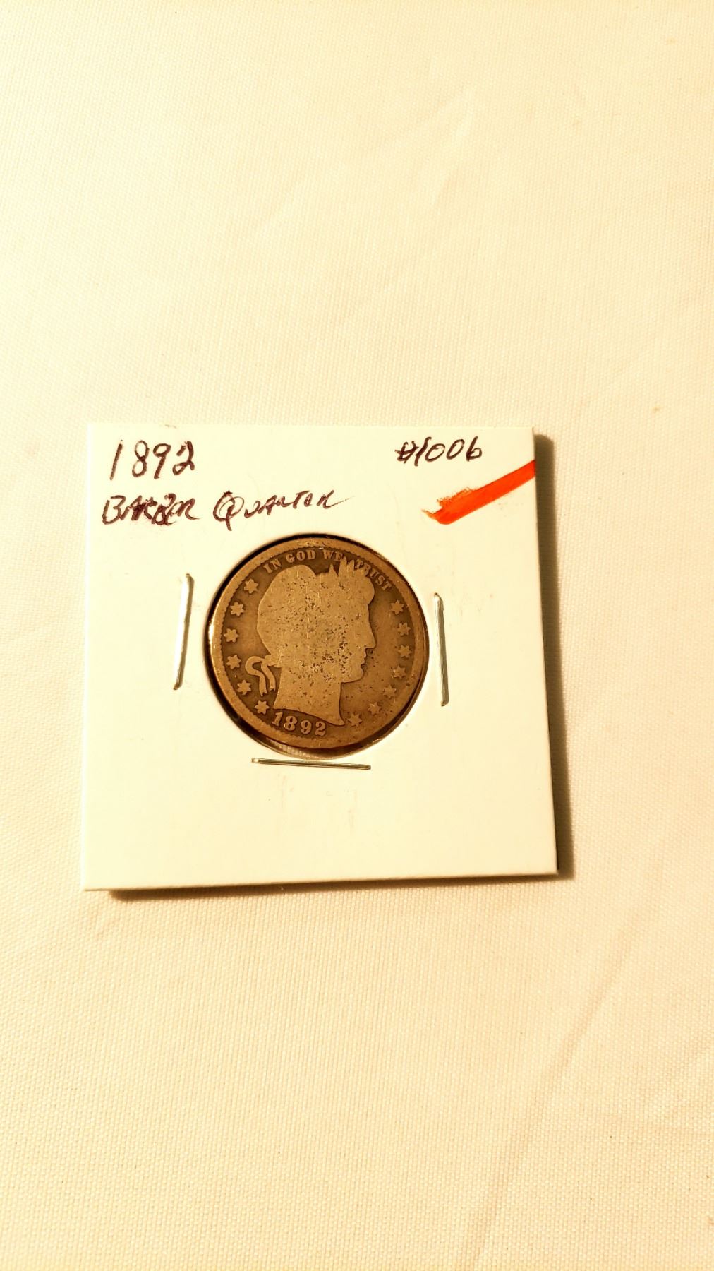 1892 Barber Quarter Grade: G4