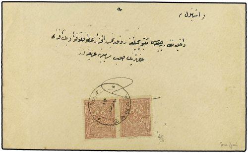 (1892 CA.) SANA´A. Circulada con sellos de Turquia de 20 pa. rosa lila (SC 96b), mat. SANAA. Sobre reducido por la parte superior. RARO. Cert. HOLCOMBE.