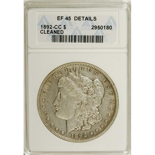 <B>1892-CC $1 --Cleaned--ANACS. XF45 Details.</B></I> NGC Census: (36/2932). PCGS Population (51/5281). Mintage: 1,352,000. Numismedia Wsl. Price: $403. (#7214)<BR><BR><b>Shipping:</b> Coins & Currency (<a target="_blank" href="http://www.heritageauctions.com/common/shipping.php">view shipping information</a>)