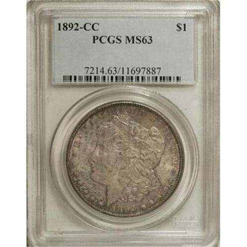 <B>1892-CC $1 MS63 PCGS.</B></I> Dusty rose, pink, and peach patina saturates the obverse of this Select piece, while the reverse has just a touch of color at the right rim. Well-defined with strong luster and few marks for the grade. A lovely example from the penultimate year of operation for the Carson City Mint.<BR><BR><b>Shipping:</b> Coins & Currency (<a target="_blank" href="http://www.heritageauctions.com/common/shipping.php">view shipping information</a>)