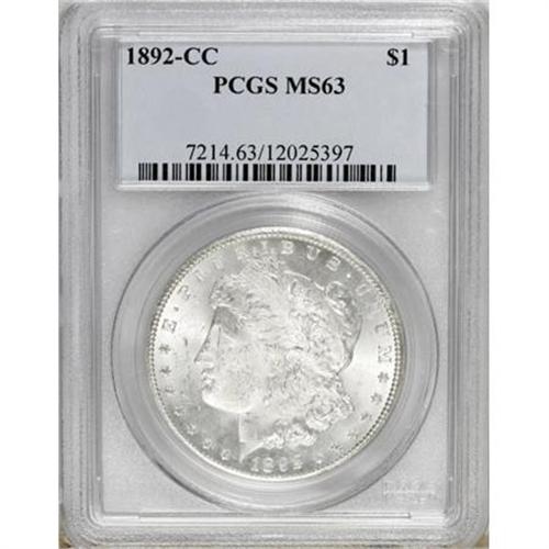 <B>1892-CC $1 MS63 PCGS.</B></I> Strongly lustrous with a measure of silver-gray haze over the obverse, though the reverse is largely untoned. Whispers of frost visit the lightly abraded devices. All things considered, an attractive representative of this later Carson City issue.<BR><BR><B>Coin Engraver:</B> George T. Morgan<BR><BR><b>Shipping:</b> Coins & Currency (<a target="_blank" href="http://www.heritageauctions.com/common/shipping.php">view shipping information</a>)
