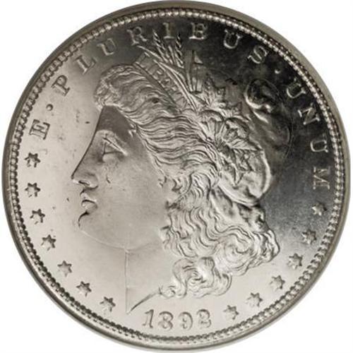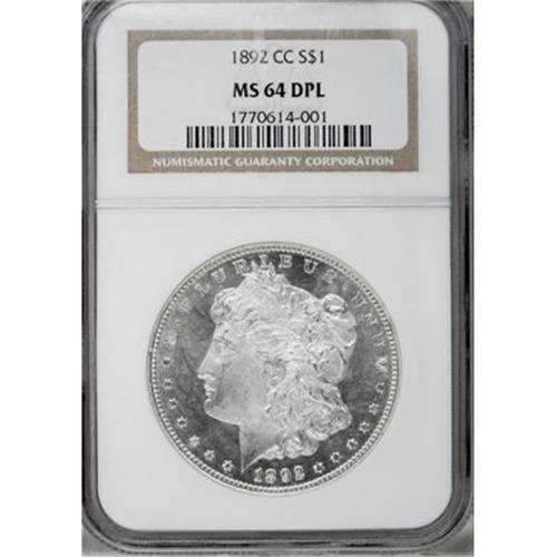 <B>1892-CC $1 MS64 Deep Prooflike NGC.</B></I> A delightful near-Gem specimen with deeply mirrored fields around lustrous devices on both sides. This piece has brilliant, untoned silver surfaces and exhibits a high degree of aesthetic desirability that will appeal to nearly any collector. Census: 17 in 64, 1 finer (12/07).<BR><BR><b>Shipping:</b> Coins & Currency (<a target="_blank" href="http://www.heritageauctions.com/common/shipping.php">view shipping information</a>)