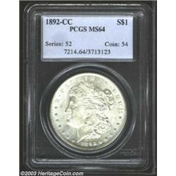 1892-CC $1 MS64 PCGS. Softly struck with clean fields, which are somewhat subdued by milky patina...