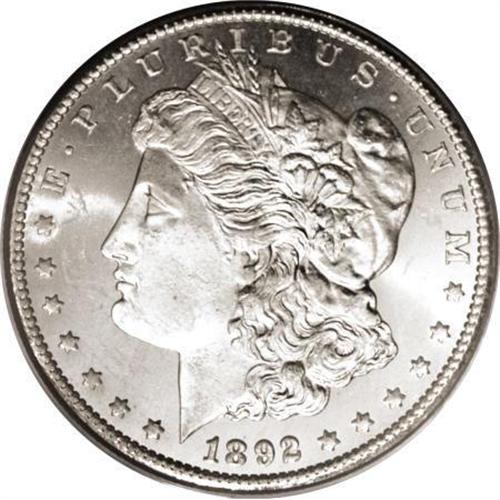 <B>1892-CC $1 MS64 PCGS.</B></I> A brilliant near-Gem with flashy fields and a crisp strike. The centers display only a hint of incompleteness of strike, and the only mark worthy of mention is located on the chin. The vast GSA hoard greatly increased demand for Carson City Morgan dollars, but since the '92-CC was absent from the Treasury holdings, the supply of quality examples is limited.<BR><BR><B>Coin Engraver:</B> George T. Morgan<BR><BR><b>Shipping:</b> Coins & Currency (<a target="_blank" href="http://www.heritageauctions.com/common/shipping.php">view shipping information</a>\)